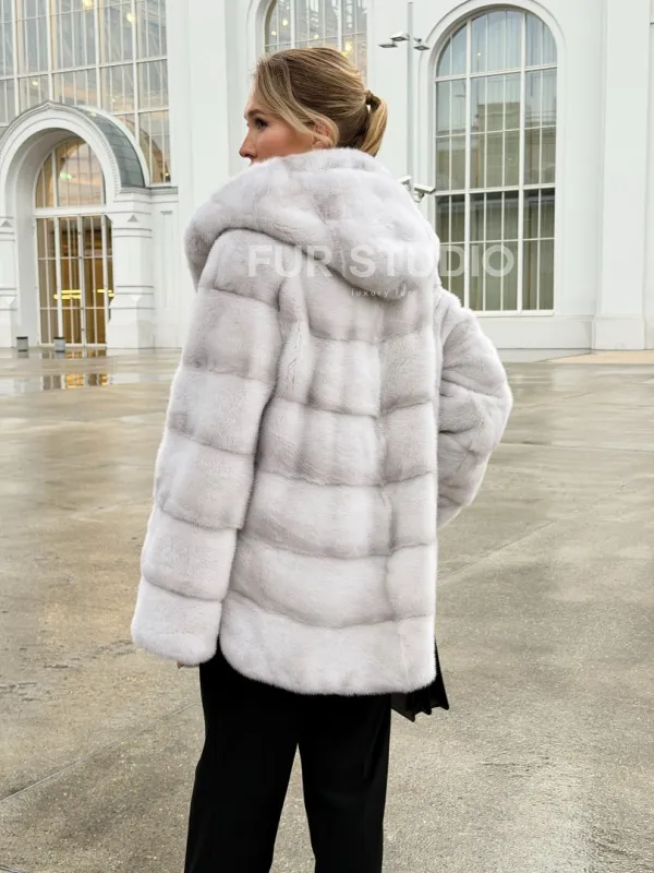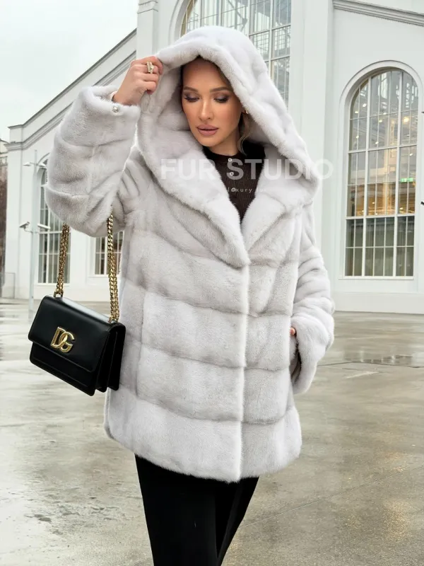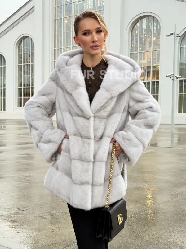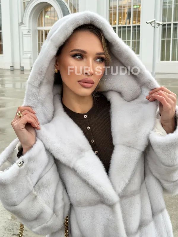 Белая норковая шуба с капюшоном - автоледи 102675