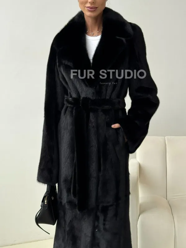 Черная норковая шуба с поясом доступна для покупки в нашем шоуруме Furs Studio в . У нас так же есть доставка во все города России. Добавьте немного роскоши в свой гардероб с этой шубой, которая будет служить вам многие годы.