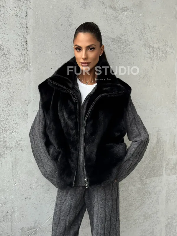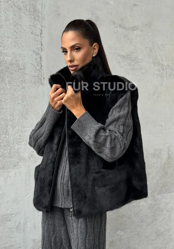 Очаруйтесь изысканной красотой и непревзойденным комфортом с нашей эксклюзивной коллекцией элитных жилетов. Изготовленный из первоклассного натурального меха, Черная норковая жилетка не только согреет вас в холодные зимние дни, но и подчеркнет ваш безупречный стиль.