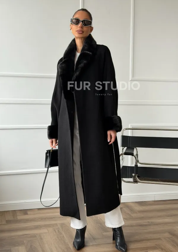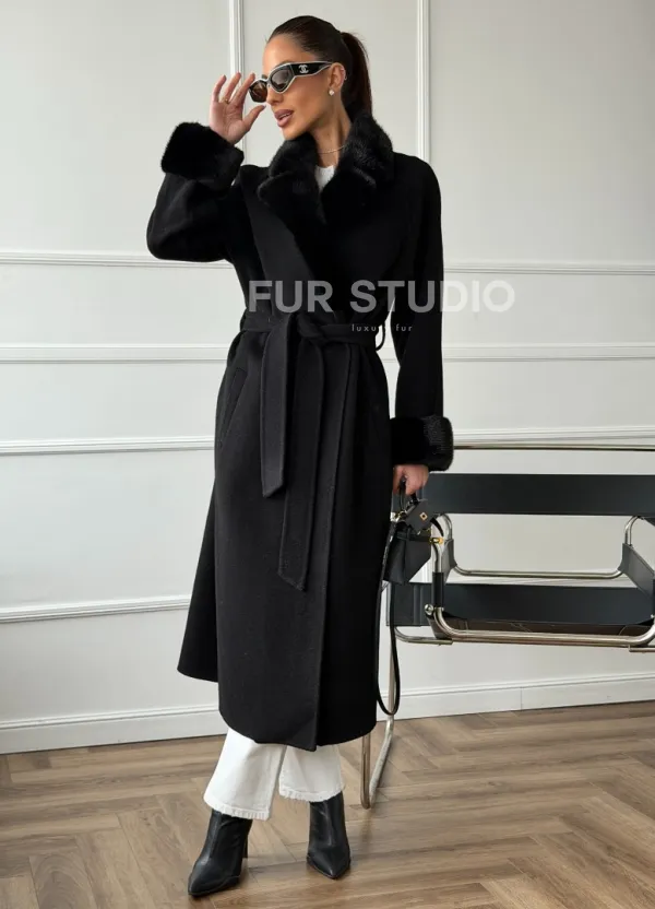 Черное пальто с мехом норки 102666