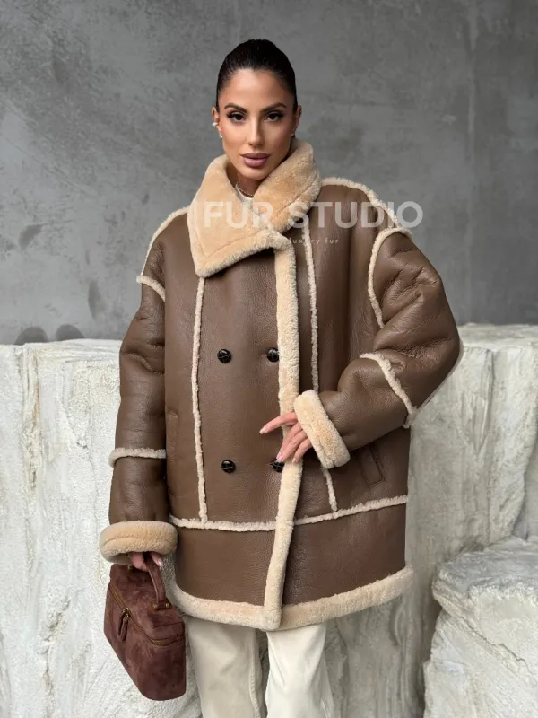 Коричневая женская дубленка 102393