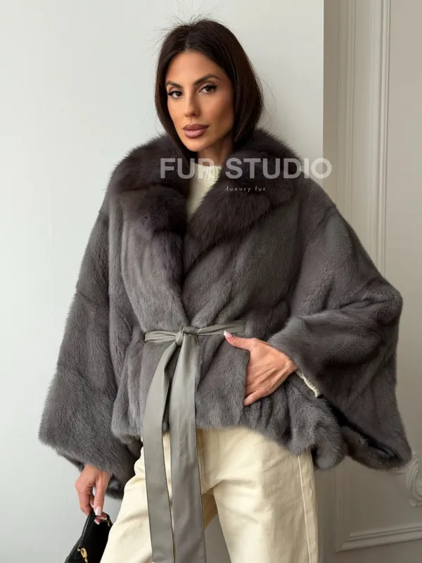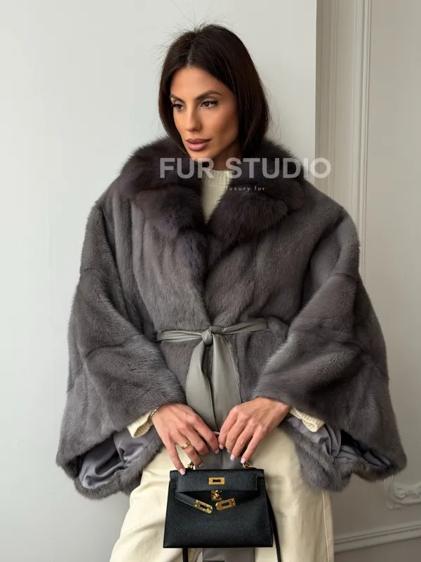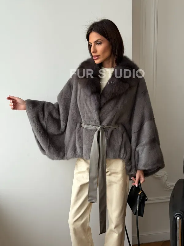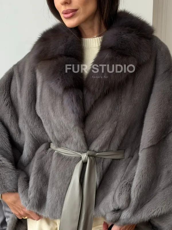 Мех данной шубы аукционная норка, цвет серый. Предлагается в размерах от 38 до 60 (oversize). Длина модели 50-55 см, что выгодно подчеркивает фигуру девушек. Эта модель идеально подойдет для девушек и женщин, предпочитающих роскошные натуральные меха.