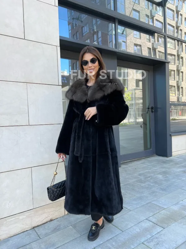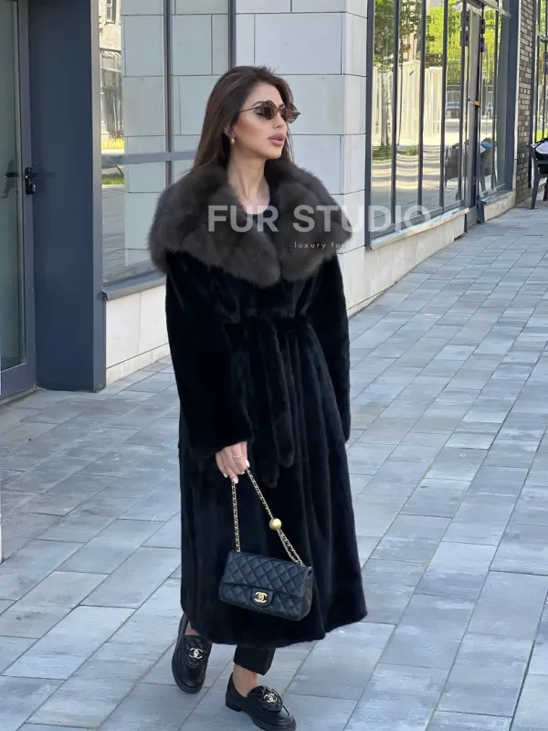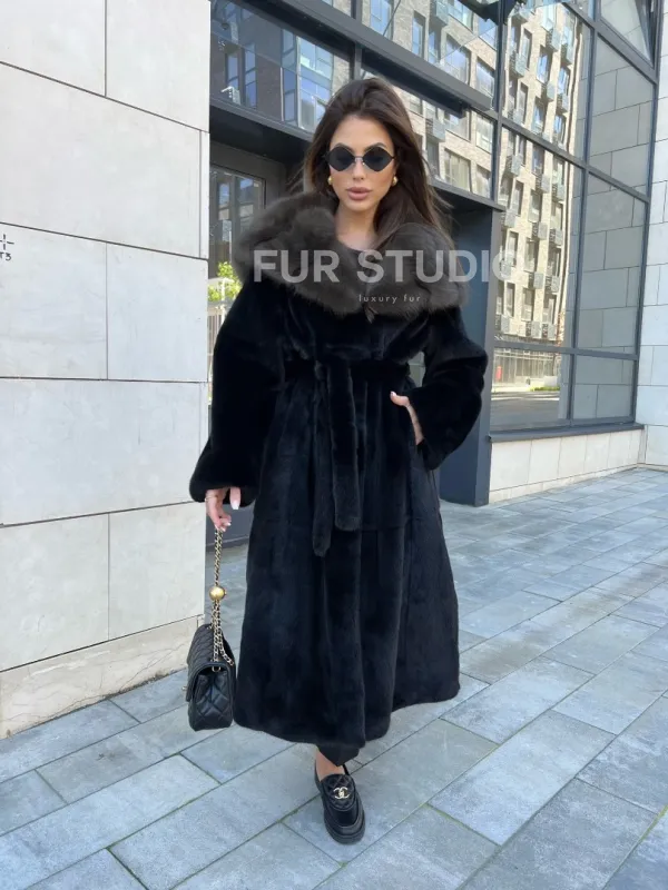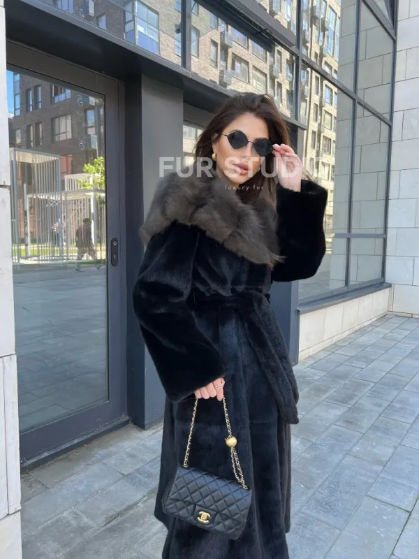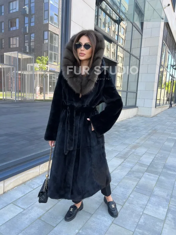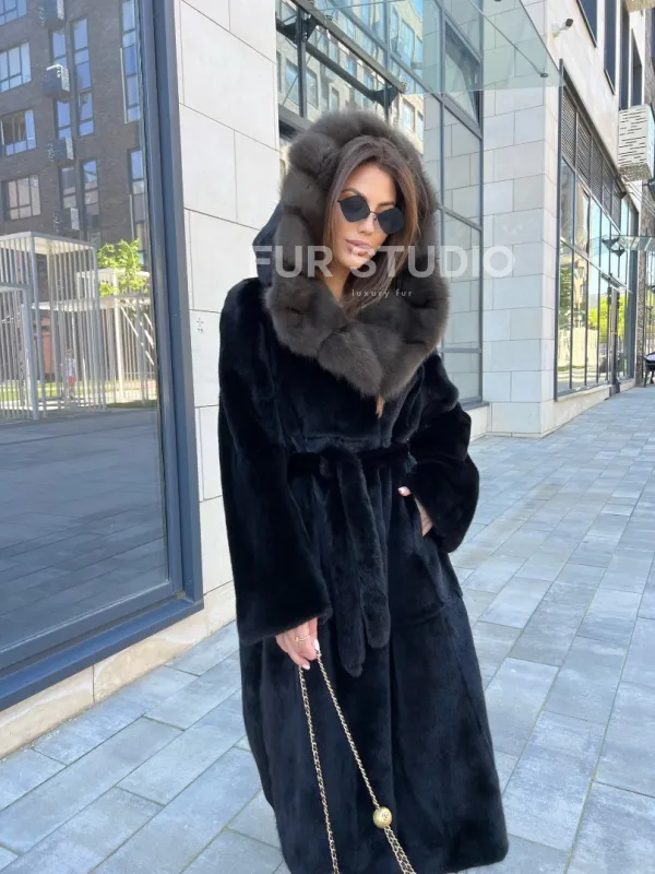 Норковая шуба с капюшоном из куницы - BlackGlama 100244