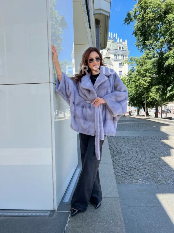 Нежный мех бережно согреет владелицу в любую непогоду. Широкие рукава не сковывают движение. Оптимальная длина удобна при носке. Меховой пояс очертит талию и создаст силуэт песочных часов. В изделии вы будете выглядеть женственно и роскошно. Образ дополнит статусная сумочка. Купить норковое пончо из меха голубой норки может женщина, у которой безукоризненный вкус и она любит выглядеть роскошно.