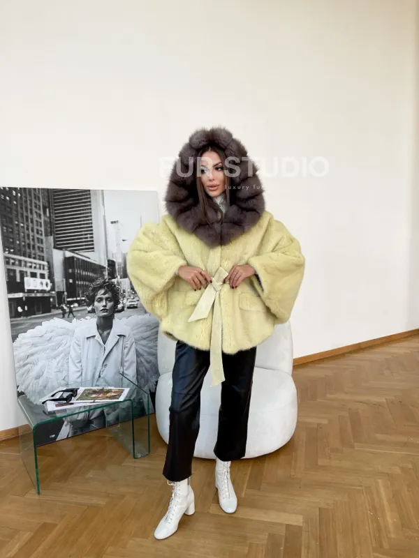 Норковое пончо с капюшоном из меха куницы – выбор девушек, которые любят приковывать взгляды. Необычный цвет будет собирать восхищенные взгляды и выделит из толпы. Нежный мех норки согреет в любую непогоду в холода. Высокое качество изделия будет радовать долгие годы. Широкий капюшон из меха куницы бережно защитит от непогоды и ветра прическу.
