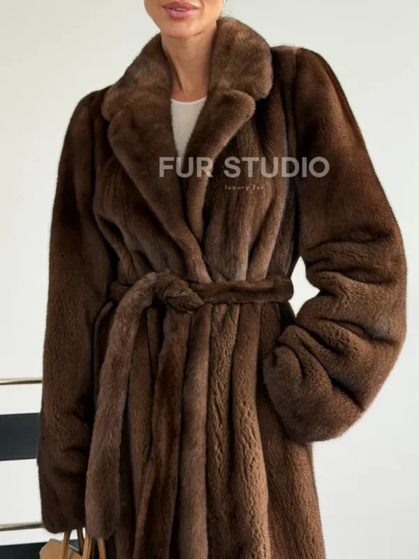 Прямая шуба из норки с поясом доступна для покупки в нашем шоуруме Furs Studio в . У нас так же есть доставка во все города России. Добавьте немного роскоши в свой гардероб с этой шубой, которая будет служить вам многие годы.