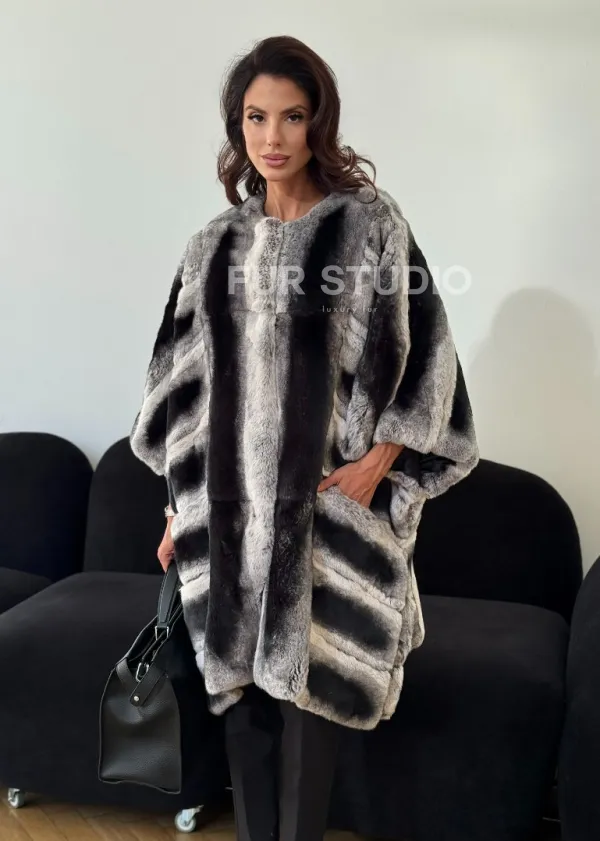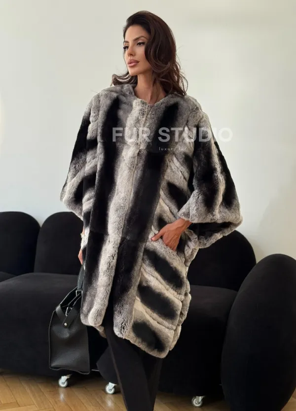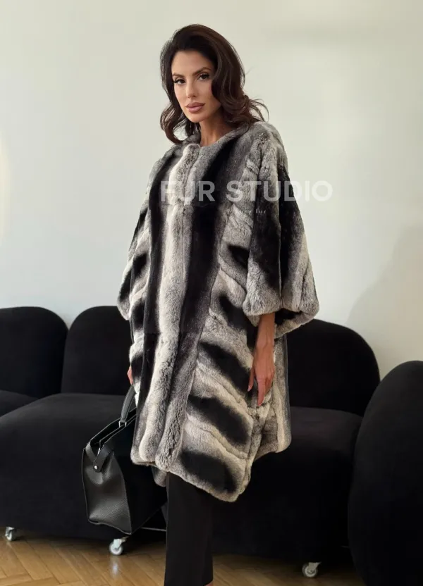 Шуба из кролика рекс - серая 102313