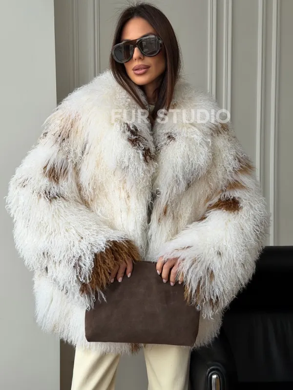 Шуба из ламы бело-коричневая доступна для покупки в нашем шоуруме Furs Studio в . У нас так же есть доставка во все города России. Добавьте немного роскоши в свой гардероб с этой шубой, которая будет служить вам многие годы.