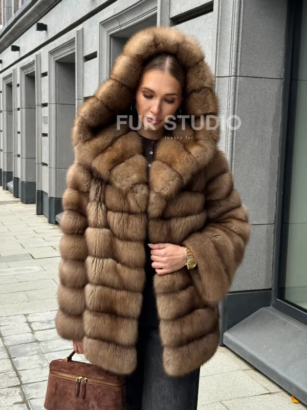Шуба из натурального меха куницы с капюшоном доступна для покупки в нашем шоуруме Furs Studio в . У нас так же есть доставка во все города России. Добавьте немного роскоши в свой гардероб с этой шубой, которая будет служить вам многие годы.