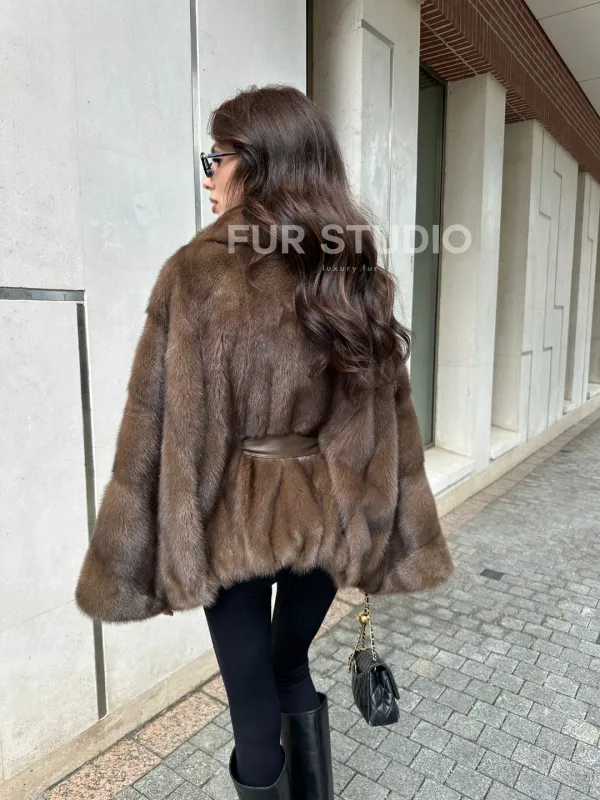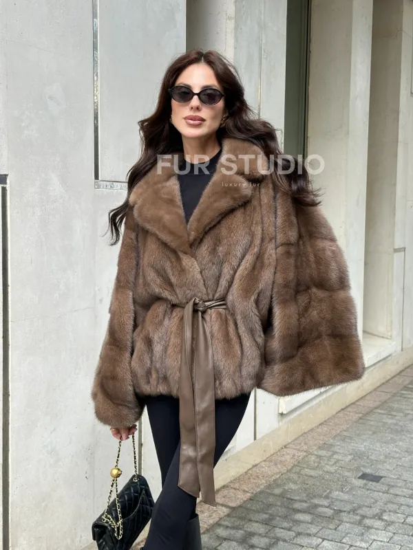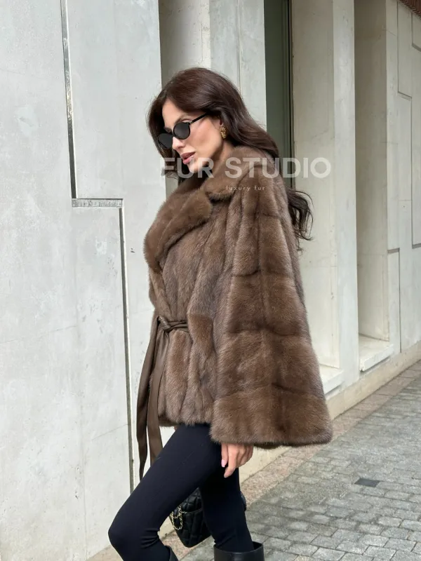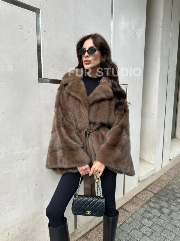 Мех данной шубы аукционная норка, цвет коричневый . Предлагается в размерах от 40 до 60 (oversize). Длина модели 60-65 см, что выгодно подчеркивает фигуру девушек. Эта модель идеально подойдет для девушек и женщин, предпочитающих роскошные натуральные меха.