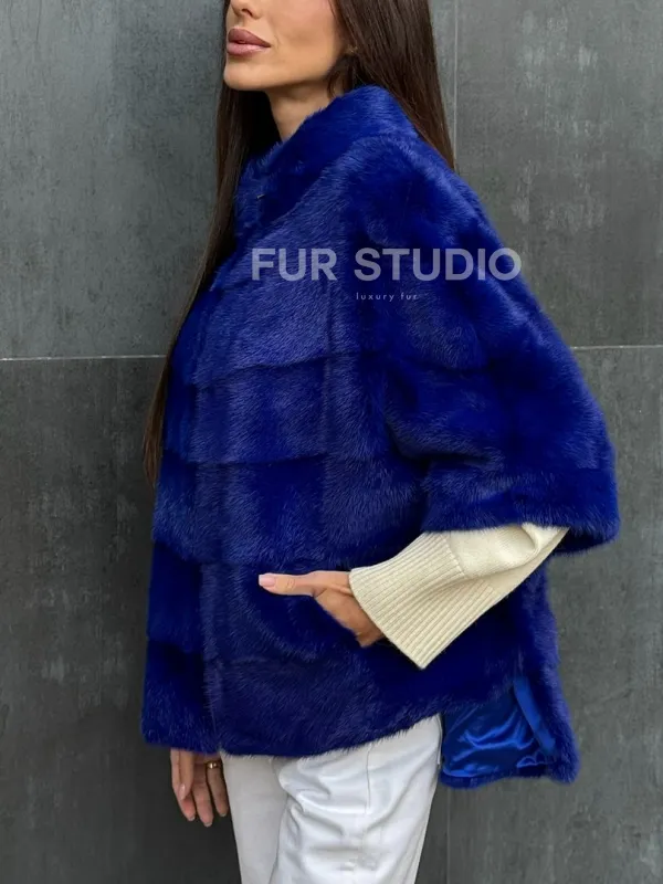 Мех данной шубы аукционная норка , цвет синий. Предлагается в размерах от 40 до 48 (oversize). Длина модели 60-65 см, что выгодно подчеркивает фигуру девушек. Эта модель идеально подойдет для девушек и женщин, предпочитающих роскошные натуральные меха.