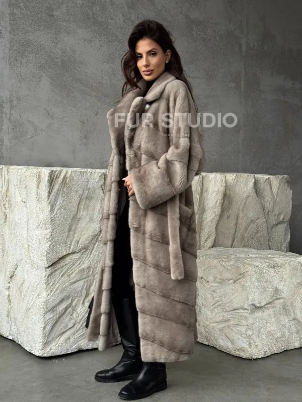 Удлинённая норковая шуба с поясом доступна для покупки в нашем шоуруме Furs Studio в . У нас так же есть доставка во все города России. Добавьте немного роскоши в свой гардероб с этой шубой, которая будет служить вам многие годы.