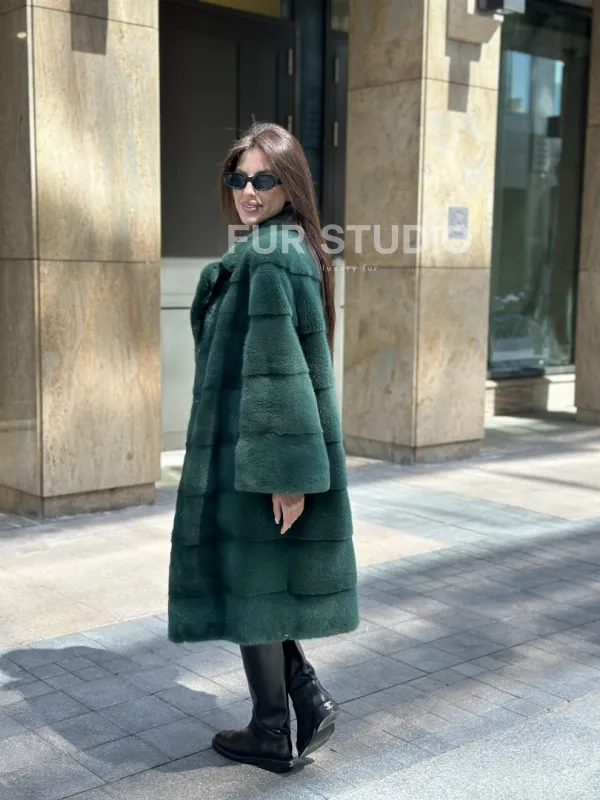 Зеленая шуба мех NAFA английский воротник доступна для покупки в нашем шоуруме Furs Studio в . У нас так же есть доставка во все города России. Добавьте немного роскоши в свой гардероб с этой шубой, которая будет служить вам многие годы.